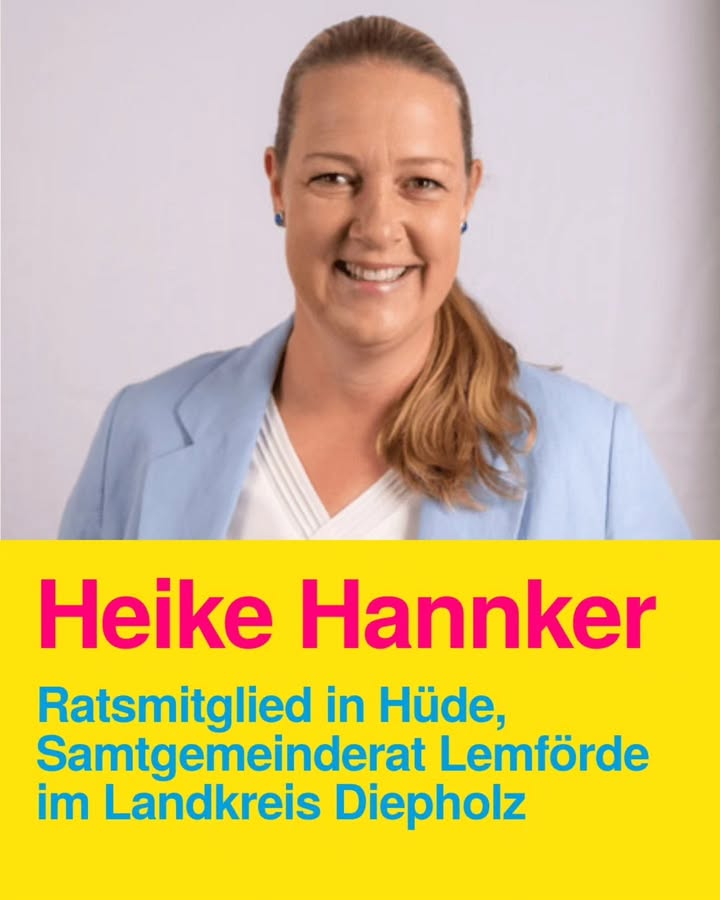 Wir stellen heute unsere kommunale Heldin Heike Hannker vor! 💛 Als Ratsmitglied in Hüde und Mitglied im Samtgemeinderat Lemförde im Landkreis Diepholz setzt sich Heike für spürbare Investitionen in Infrastruktur, Bildung, Sport und Feuerwehr ein – Dinge, die die Menschen im Alltag direkt merken. 💪 👉 Du möchtest wie Heike ein Vorbild in deiner Gemeinde werden? Dann kandidiere bei der #kommunalwahl2026 für die Freien Demokraten und bring dich aktiv ein! #kommunalehelden #lemförde #diepholz #niedersachsen fdp